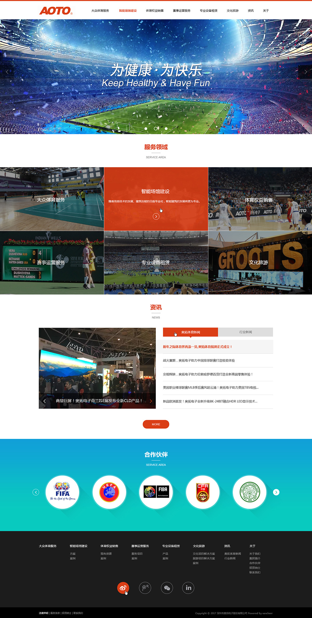 深圳市奧拓體育文化發(fā)展有限公司(以下簡(jiǎn)稱(chēng)“奧拓體育”)為深圳市奧拓電子股份有限公司(股份代碼:002587)的控股子公司,具有多年的國(guó)際體育業(yè)務(wù)經(jīng)驗(yàn),是多項(xiàng)國(guó)際體育賽事設(shè)備標(biāo)準(zhǔn)制定者,擁有國(guó)際化的專(zhuān)業(yè)團(tuán)隊(duì)和覆蓋全球的服務(wù)網(wǎng)絡(luò),是FIFA、FIBA、UEFA、中國(guó)之隊(duì)等戰(zhàn)略合作伙伴。