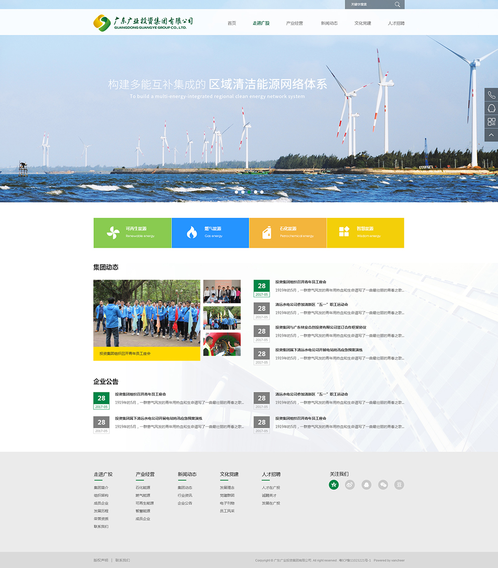 廣東廣業(yè)投資集團(tuán)有限公司是一以清潔能源為主業(yè),以推動(dòng)“綠色發(fā)展”為已任,致力于南粵大地“水更清、地更綠、天更藍(lán)”的產(chǎn)業(yè)集團(tuán)。業(yè)務(wù)主要涵蓋石化能源、燃?xì)饽茉?、可再生能源和智慧能源四個(gè)板塊。 公司成立于1992年,是廣東省廣業(yè)集團(tuán)有限公司直屬全資國(guó)有企業(yè),注冊(cè)資本9.6億元,擁有2座水力電站、2座風(fēng)力發(fā)電站;形成高品質(zhì)油品和天然氣采購(gòu)、運(yùn)輸、倉(cāng)儲(chǔ)、銷售全產(chǎn)業(yè)鏈服務(wù)體系,目前擁有油氣站34座、7.8萬(wàn)立方米油庫(kù)、5000噸級(jí)碼頭、廣州地區(qū)一的CNG(壓縮天然氣)母站,是廣東省內(nèi)主要的燃?xì)夤?yīng)商之一,在華南區(qū)域燃?xì)庑袠I(yè)里占據(jù)30%以上的市場(chǎng)份額,也是廣東省內(nèi)四大成品油批發(fā)商,高品質(zhì)油品供應(yīng)位列省屬國(guó)有企業(yè)一名。