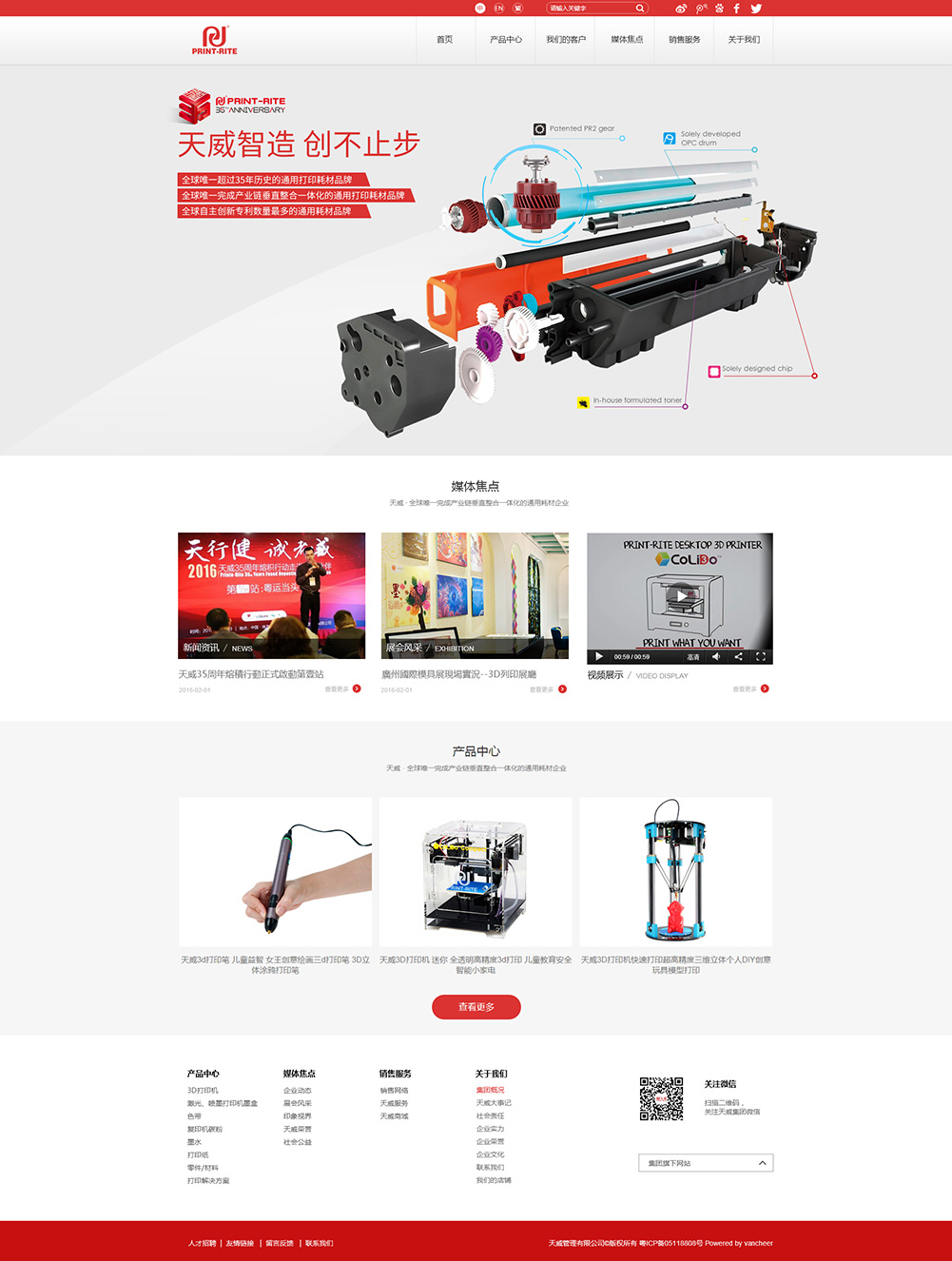 天威是全球的打印機(jī)通用耗材制造商,1981年創(chuàng)立于香港,擁有30余年專業(yè)打印耗材制造經(jīng)驗(yàn),是全球行業(yè)首且擁有噴墨、激 光、色帶上下游垂直整合一體化的廠商。目前旗下?lián)碛惺嘀圃鞆S,自主研發(fā)的硒鼓、墨盒、色帶等9大類上萬款產(chǎn)品,銷售網(wǎng)絡(luò)遍布全球120個(gè)和地區(qū)。 近年來天威還不斷地轉(zhuǎn)型升級,匯同國內(nèi)外科學(xué),組建了業(yè)內(nèi)專業(yè)的3D研發(fā)和營銷服務(wù)團(tuán)隊(duì),創(chuàng)立起3D打印機(jī)品牌—— CoLiDo,成長全球知名的3D打印智造商。在3D打印機(jī)機(jī)器生產(chǎn)的基礎(chǔ)上,主攻3D打印材料開發(fā),致力打造“3D打印孵化平臺”,融入3D設(shè)計(jì)、掃描、后加工、應(yīng)用,實(shí)現(xiàn)3D 打印產(chǎn)業(yè)聯(lián)合技術(shù)創(chuàng)新和產(chǎn)業(yè)聚集發(fā)展。