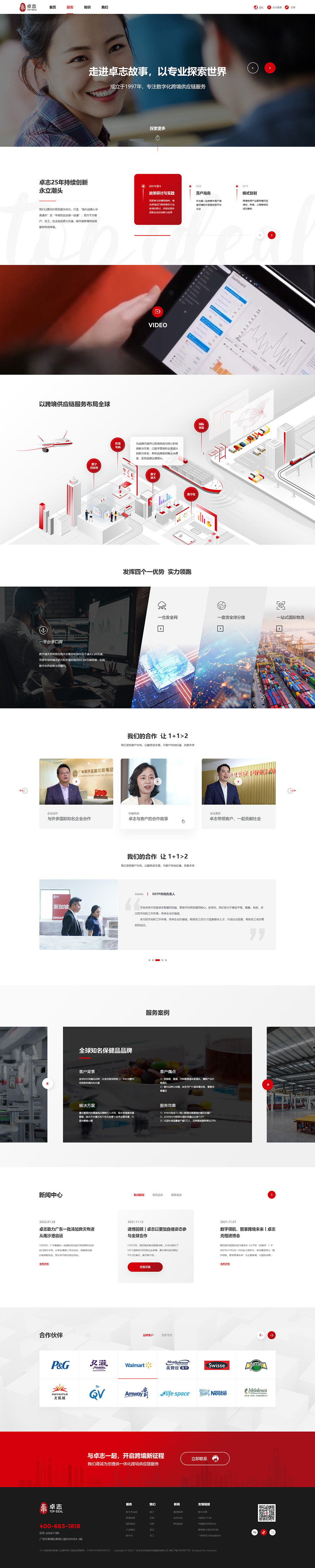 憑借從研發(fā)設(shè)計(jì)、合規(guī)、交易貫穿至履約交付的全鏈條業(yè)務(wù)能力和經(jīng)驗(yàn),卓志為客戶提供了一體化的跨境供應(yīng)鏈集成解決方案,通過“海外品牌入華直通車"及"中國優(yōu)品出海一站通"為客戶帶來安全可靠、成本優(yōu)、全程在線可視可控、可預(yù)測的服務(wù)體驗(yàn),讓跨境貿(mào)易更加便利。公司攜手多個500強(qiáng)品牌長期合作發(fā)展,在跨境供應(yīng)鏈服務(wù)領(lǐng)域打造了眾多成功案例。