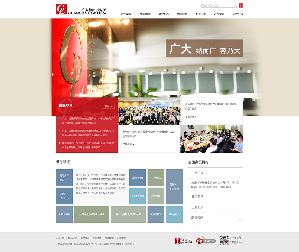 廣大總部設(shè)于廣州,并在北京、上海和深圳設(shè)有分支機構(gòu),地理分布優(yōu)勢使我們的服務(wù)范圍覆蓋中國重要經(jīng)濟發(fā)展區(qū)域的各大主要城市。同時,作為中國一個跨國律師事務(wù)所聯(lián)盟----中世律所聯(lián)盟(SGLA)的創(chuàng)始成員所之一,我們可以通過SGLA的國內(nèi)和國際網(wǎng)絡(luò)獲得更為廣闊的空間和資源,從而為中國和范圍內(nèi)的客戶提供更加優(yōu)質(zhì)的法律服務(wù)。