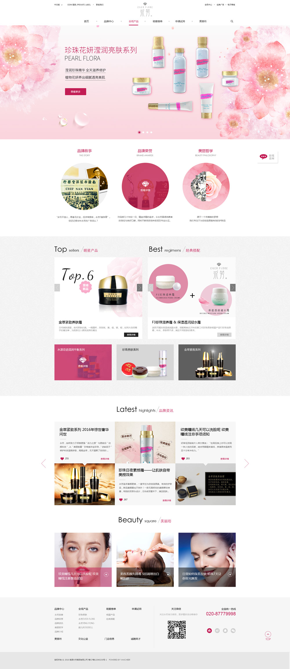 1942年,永芳創(chuàng)始人姚永芳(太平紳士JP)在馬來西亞創(chuàng)立“南源布莊(私人)有限公司”,不斷發(fā)展壯大至百貨、紡織、印刷、酒店、日用化工、旅游等行業(yè),其中“永芳”高級護膚品更是由華人創(chuàng)造并以華人名字命名的護膚品。2016年,永芳傾注多年研發(fā)經(jīng)驗,推出三大皇牌系列:金萃緊致系列、珍珠花妍瀅潤亮膚系列、水漾奇跡清潤平衡系列。
